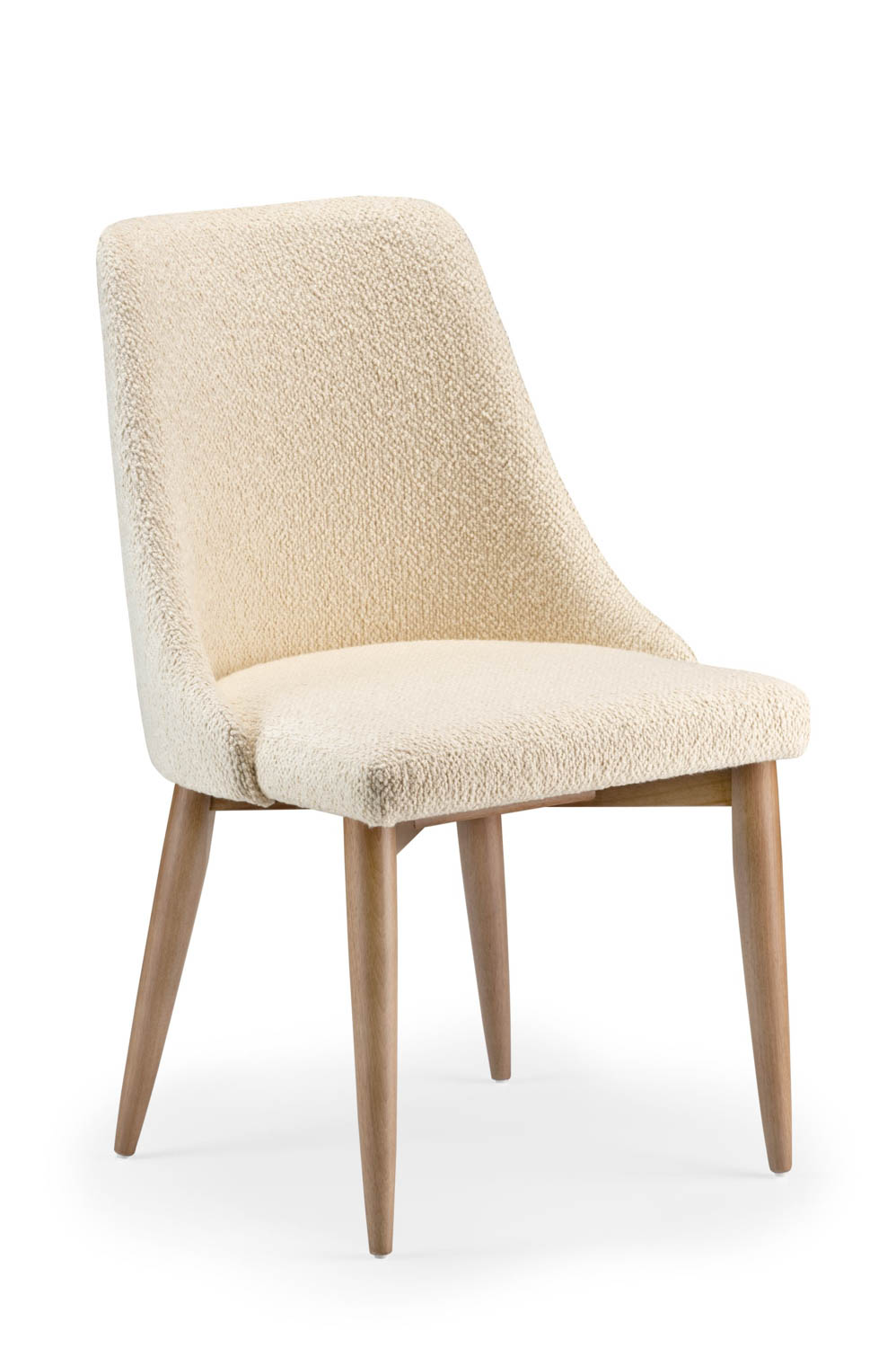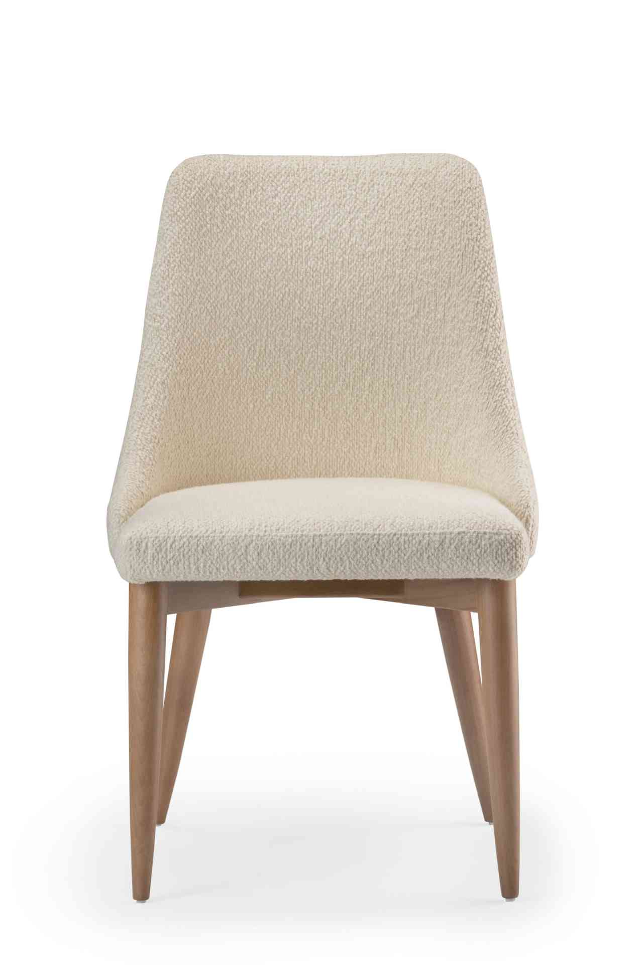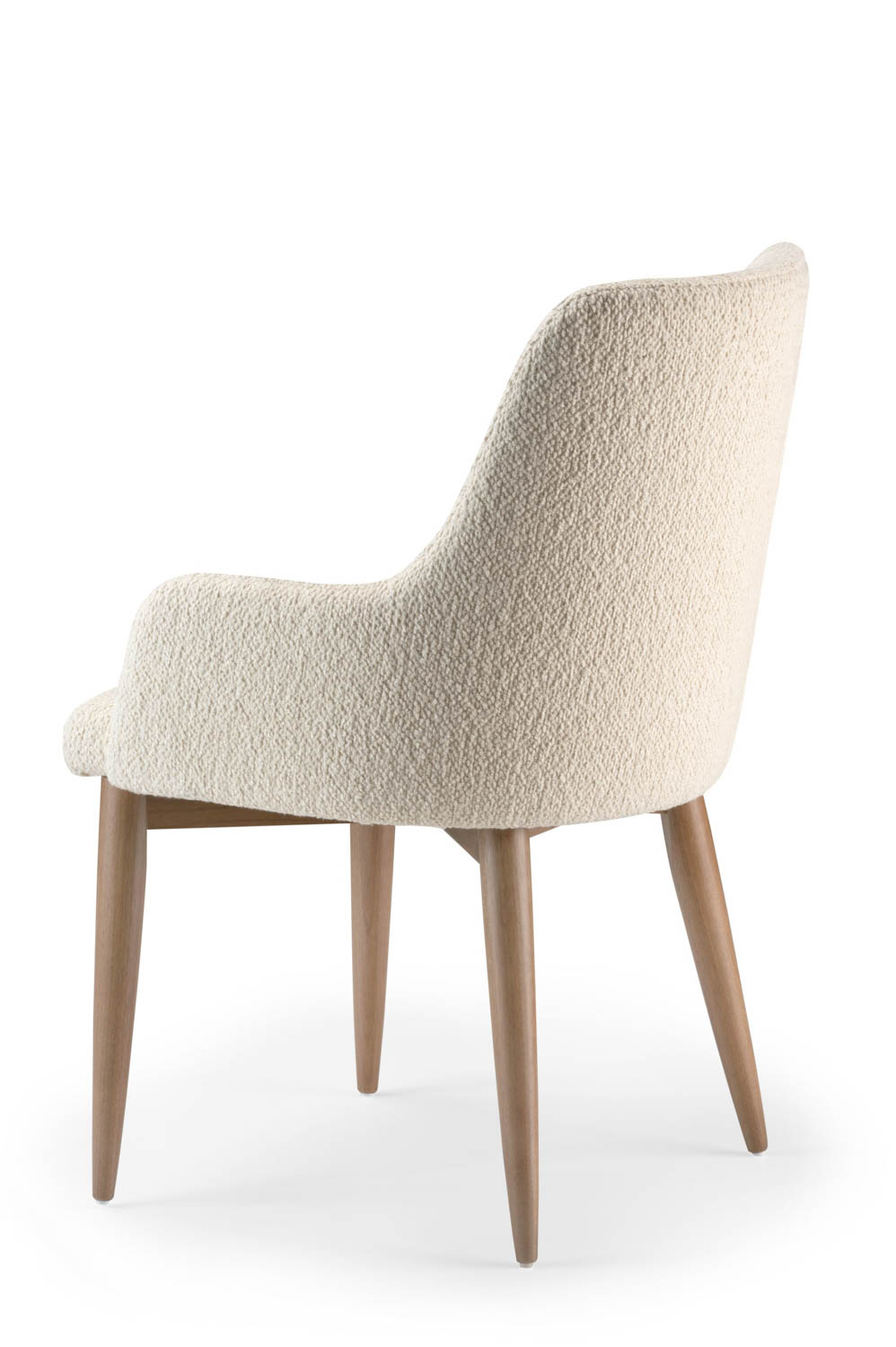 • Base Robusta e Natural: As pernas em madeira maciça com alto acabamento complementam a estética orgânica da cadeira, garantindo estabilidade e durabilidade, além de adicionar um toque de calor e autenticidade ao design.