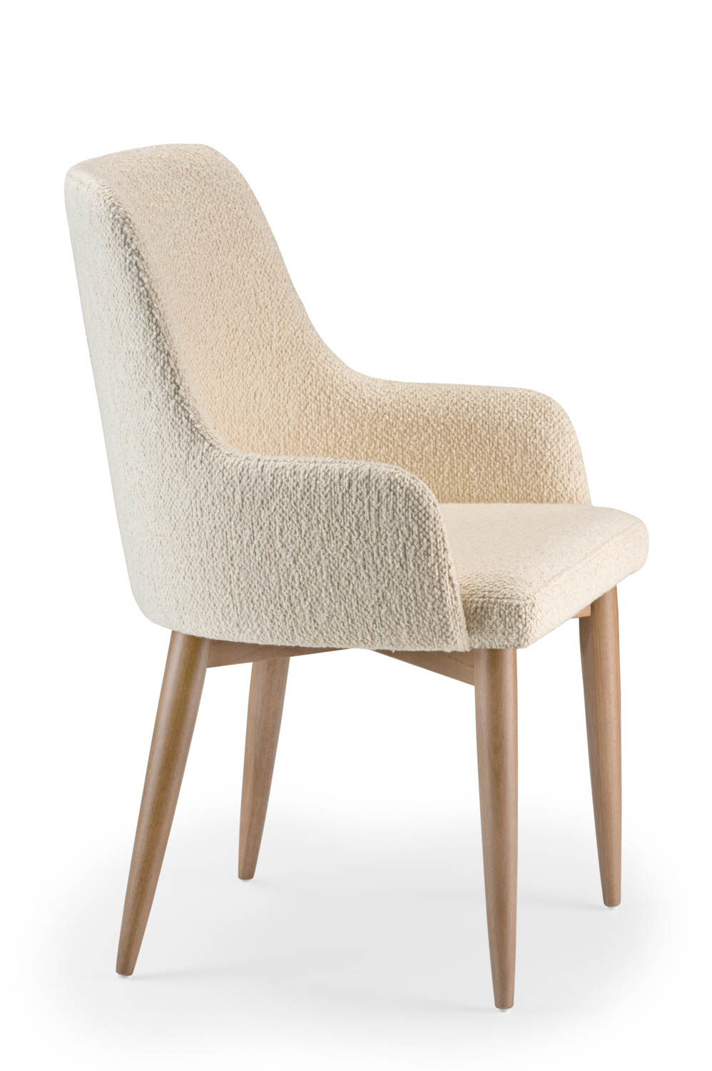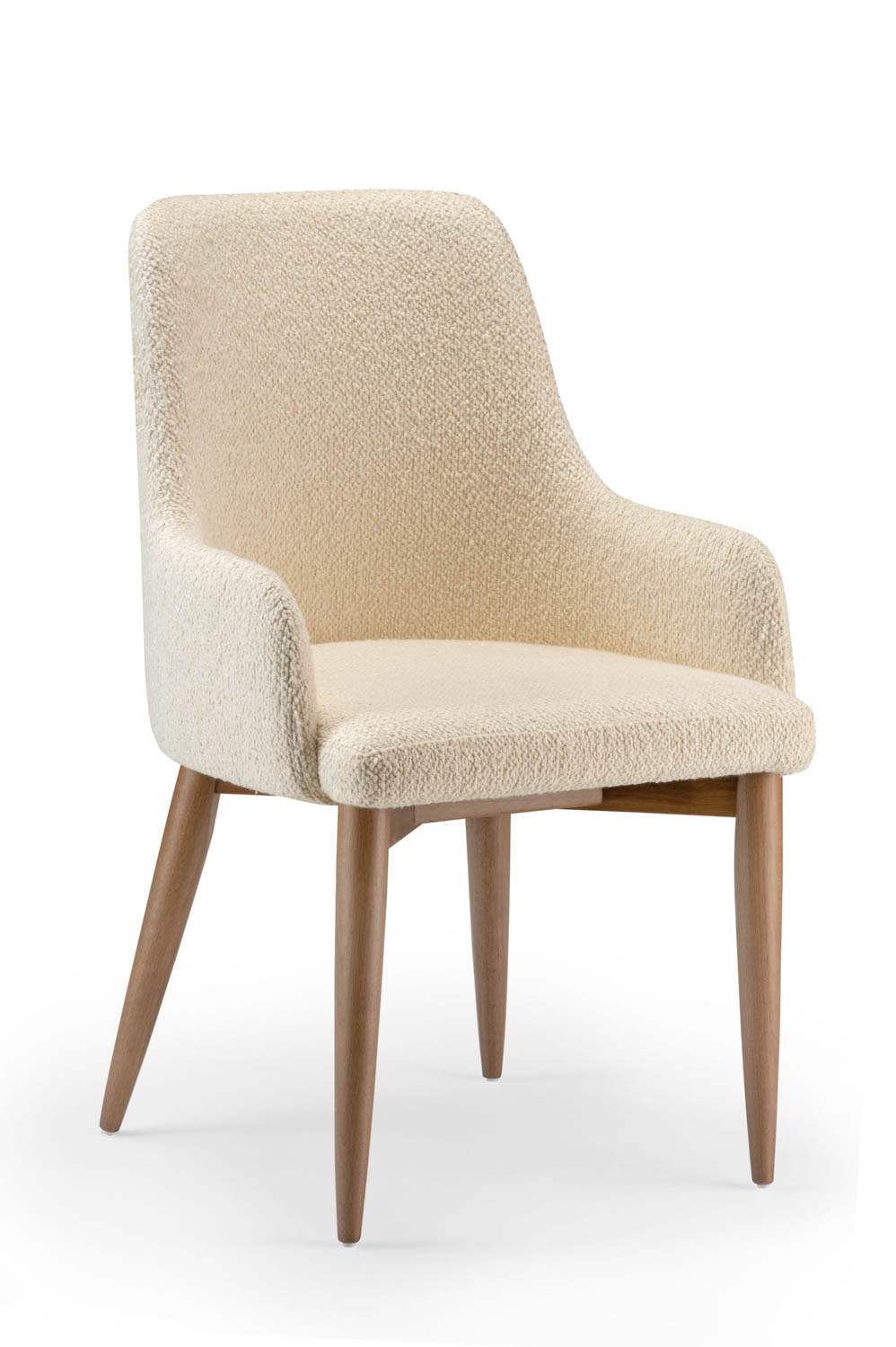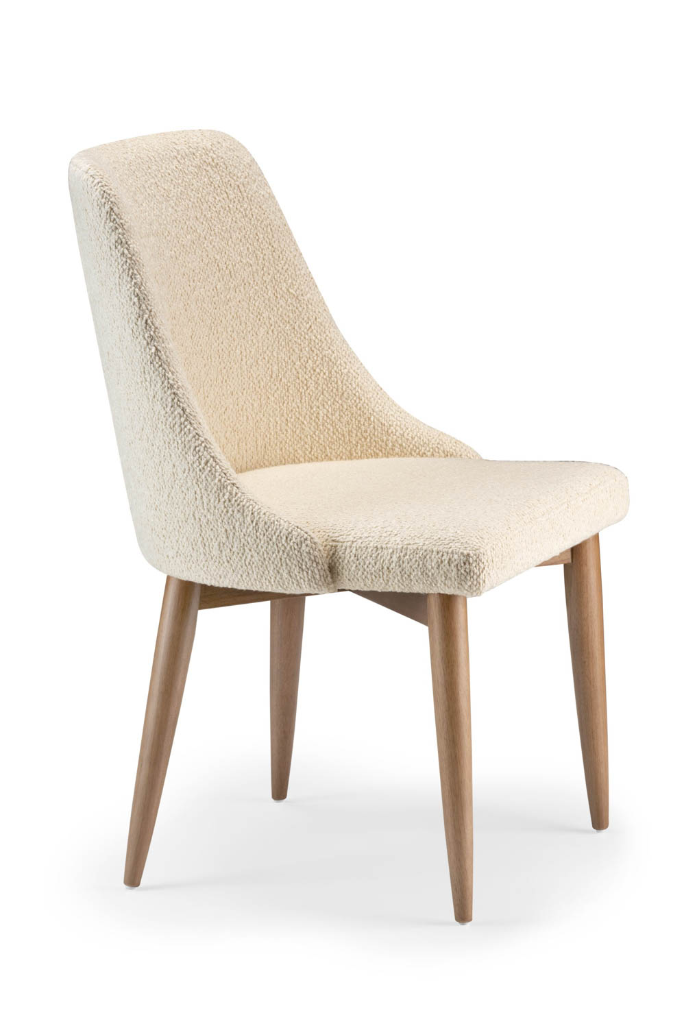 • Base Robusta e Natural: As pernas em madeira maciça com alto acabamento complementam a estética orgânica da cadeira, garantindo estabilidade e durabilidade, além de adicionar um toque de calor e autenticidade ao design.