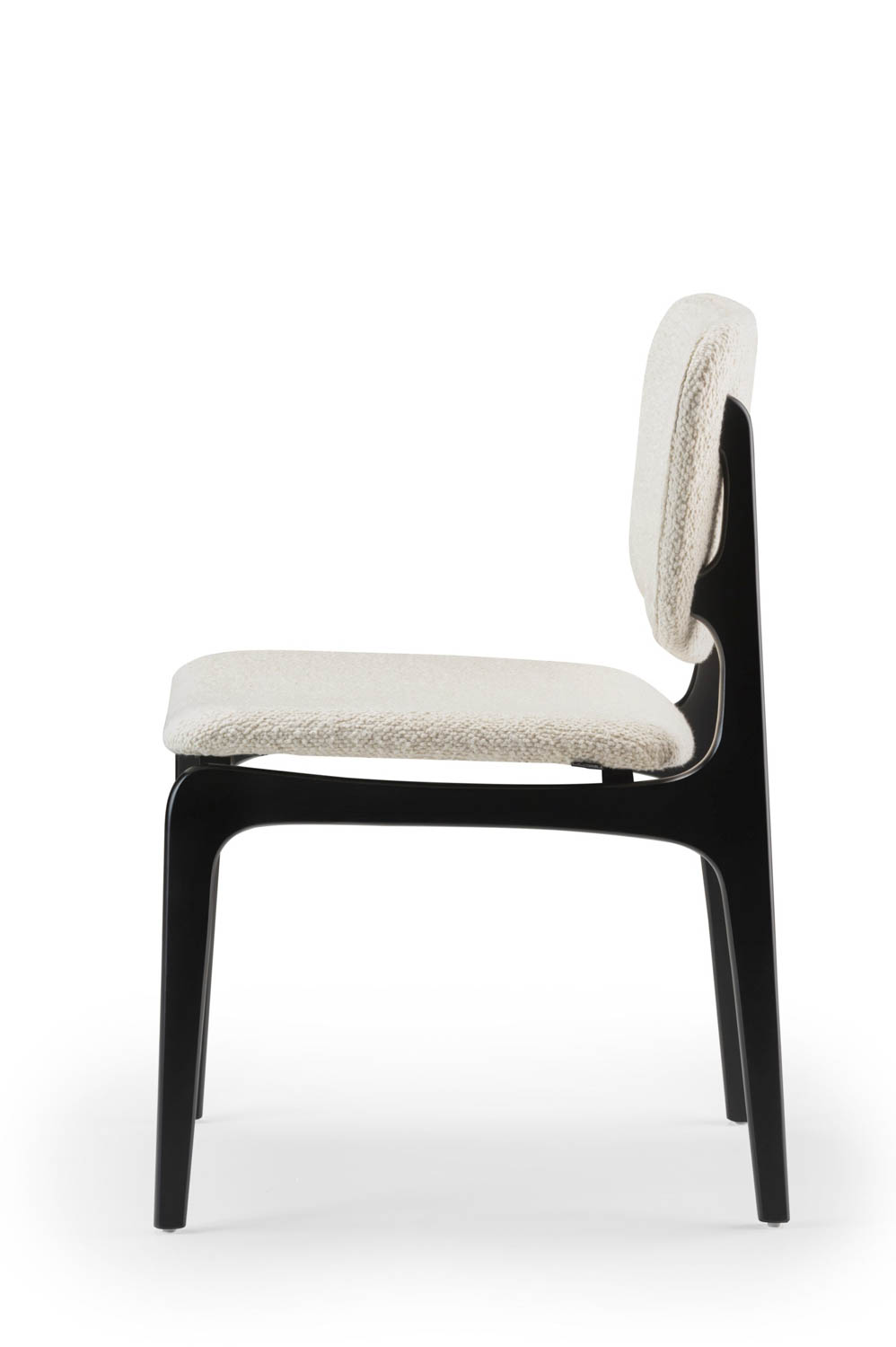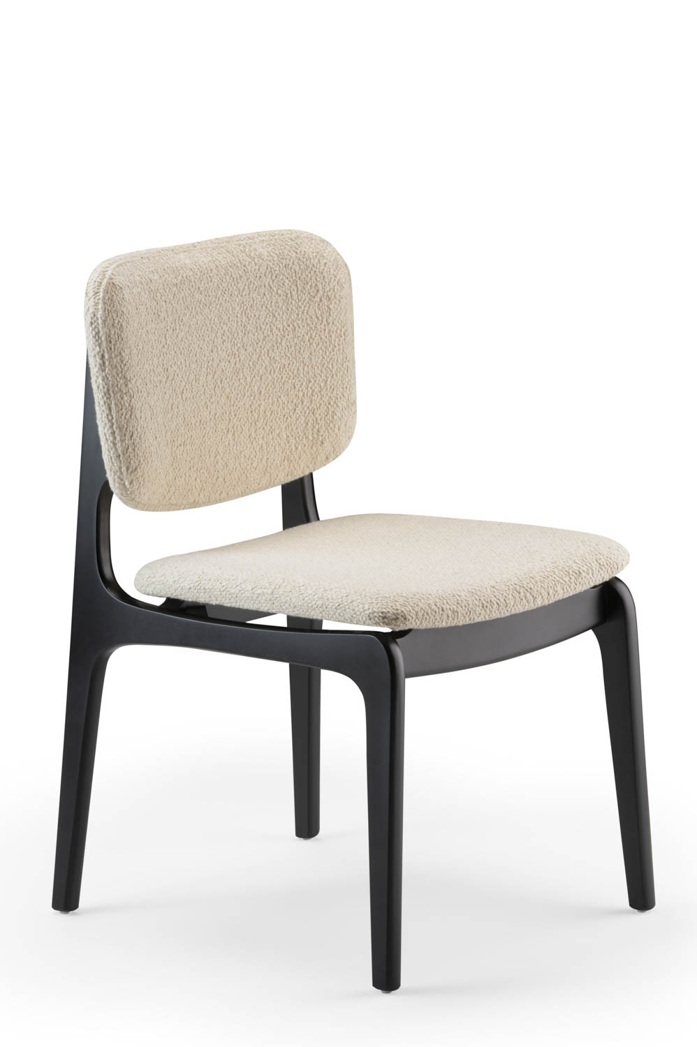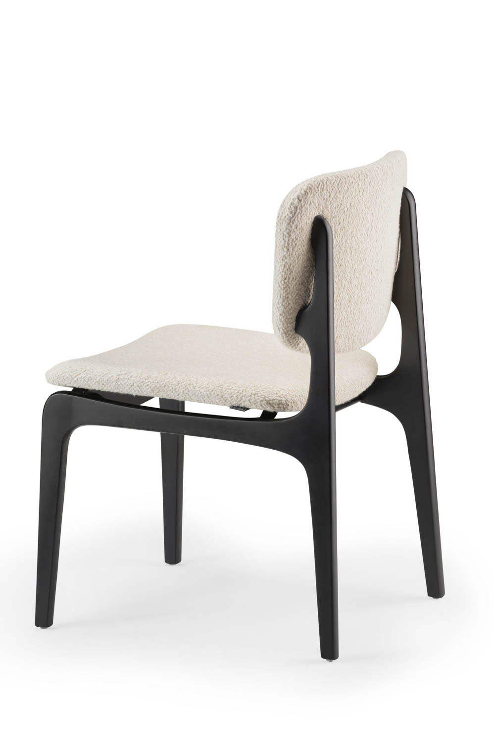 Apresentamos a Cadeira Claire, uma peça que combina a robustez e elegância da madeira com a suavidade de um estofamento. Seu design com contraste marcante é perfeito para quem busca um toque de modernidade e sofisticação, sem abrir mão do conforto.
